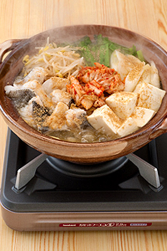 锅里加水、鸡精和盐,调中火煮开后加入鳕鱼肉、豆芽菜、大葱、豆腐和泡菜,再次煮开后加韭菜并撒上一层白芝麻粉即可。